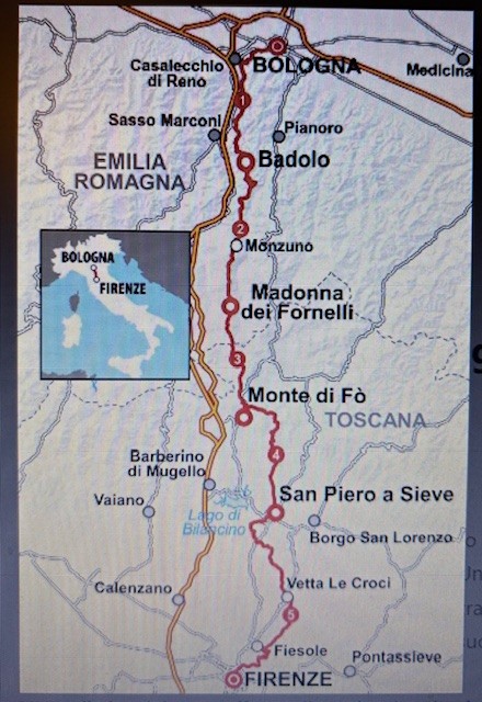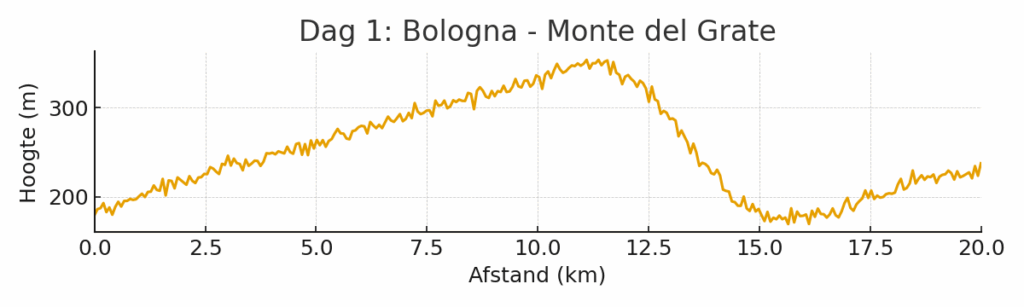 Dag 2: Etappe 1 Bologna – Monte del Frate 21.5 km