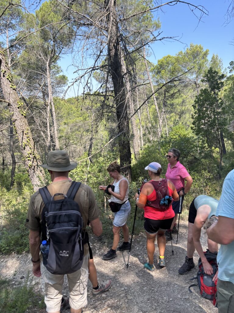 Vandaag is het handig dat je eerst even boodschappen doet, omdat de winkels alleen in de ochtend open zijn. We starten dan ook pas wat later met de eerste wandeling, een inkomertje van zo’n 7-8 km door het achterland van Vaison la Romaine. Voor de liefhebbers is er ook een tocht van 12 km beschikbaar, deze kun je altijd zelfstandig doorwandelen. We beklimmen de berg achter de camping en wandelen via de achterkant weer terug naar St Marcellin. Je wandelt langs wijngaarden en hebt mooie uitzichtpunten richting Faucon. Het merendeel van de tocht gaat door bos. Deze wandeling is goed begaanbaar over paden, maar bevat wel een flinke klim. Dit is eigenlijk bij alle wandelingen het geval. Neem dus goede wandelschoenen mee!!